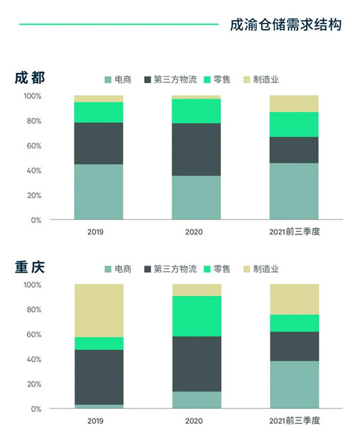 消費(fèi)和制造為成渝倉(cāng)儲(chǔ)需求的主導(dǎo)
