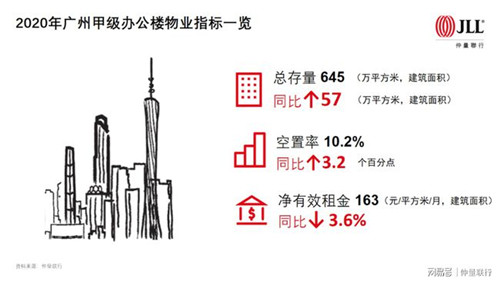 江婧麗預(yù)計(jì)2021年將是供應(yīng)大年,新增辦公面積將接近為今年的兩倍,全年約140萬(wàn)平方米甲級(jí)辦公空間投入廣州市場(chǎng),其中近6成新增辦公空間將來(lái)自于琶洲。除了一些總部自用項(xiàng)目,琶洲短期放量供應(yīng)將令其租賃市場(chǎng)壓力激增,供求不平衡將迫使該區(qū)域空置率上升,并加劇新項(xiàng)目對(duì)租戶(hù)的爭(zhēng)奪。