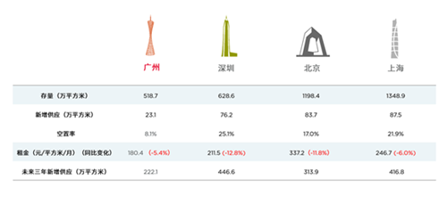 同時值得關(guān)注的是,未來四年,廣州將迎來32棟總部自建的高端寫字樓物業(yè)入市,總面積約220.91萬平方米,約占全市供應的70%。其中,實業(yè)總部占比最高,其次為TMT行業(yè)、金融總部、房地產(chǎn)及其它多元化行業(yè)總部。