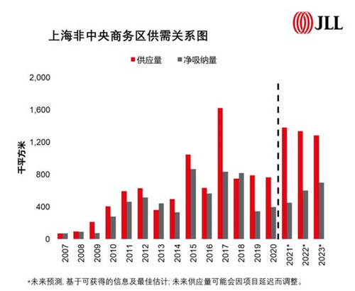 據(jù)仲量聯(lián)行統(tǒng)計(jì)數(shù)據(jù)顯示,2020年全年上海甲級(jí)辦公樓凈吸納量為40.7萬平方米,在成本控制型需求和總部整合需求的支撐下,其中上海非中央商務(wù)區(qū)2020全年凈吸納量錄得39.7萬平方米。