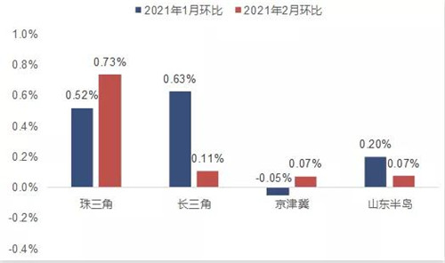 2021年2月中國百城新建住宅價(jià)格及環(huán)比漲跌幅
