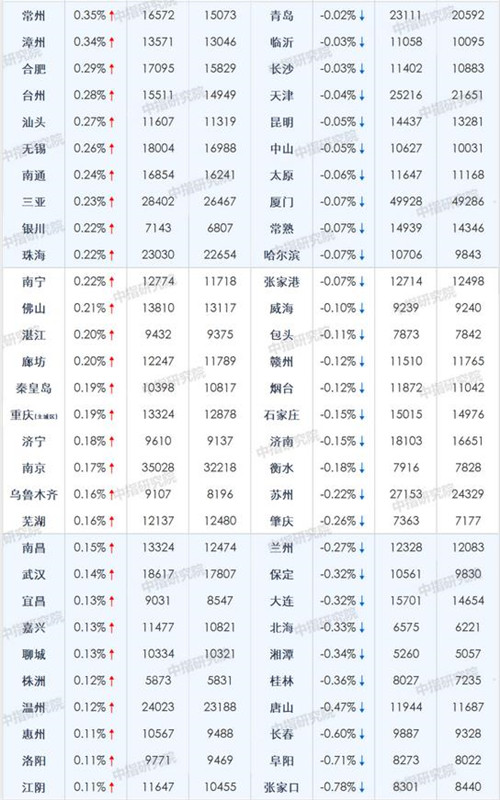 表:長三角部分城市新建住宅價(jià)格環(huán)比漲跌變化