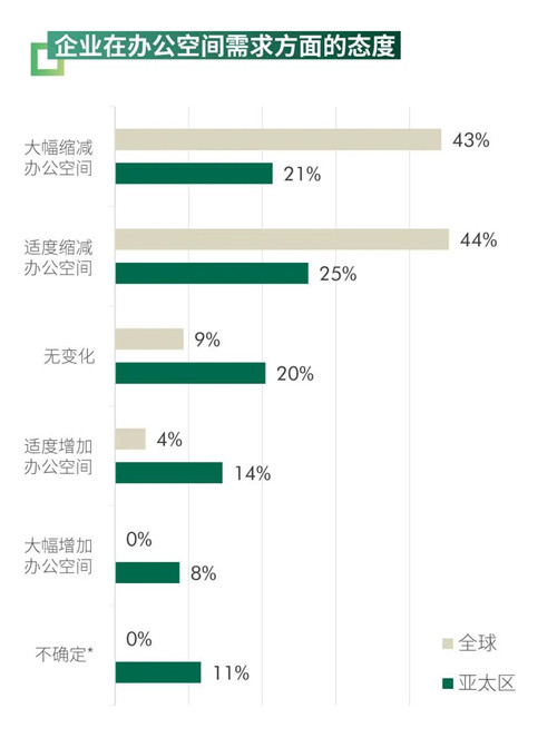 然而,疫情的持續(xù)影響和居家辦公模式在疫情期間的成功實(shí)施仍促使亞太區(qū)租戶開始對(duì)不動(dòng)產(chǎn)組合規(guī)劃及未來辦公空間需求進(jìn)行更具全局性的考量,以制定更適應(yīng)后疫情時(shí)代的房地產(chǎn)策略。