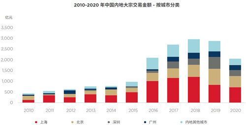 根據(jù)戴德梁行研究部數(shù)據(jù),在全球疫情蔓延與經(jīng)濟(jì)不確定性增強(qiáng)的挑戰(zhàn)下,2020年中國(guó)內(nèi)地不動(dòng)產(chǎn)大宗交易市場(chǎng)仍然保持相對(duì)活躍,全年錄得交易額2,047億元人民幣。盡管交易金額為近五年內(nèi)的最低值,但較2019年僅下降29%,整體表現(xiàn)好于市場(chǎng)普遍預(yù)期。不動(dòng)產(chǎn)大宗交易宗數(shù)約為180筆,與上一年基本持平。分季度來(lái)看,全國(guó)一至四季度交易額分別為570億、401億、418億、658億元,下半年市場(chǎng)已表現(xiàn)出回升態(tài)勢(shì),其中第四季度更是明顯發(fā)力達(dá)到全年最高水平,環(huán)比上升57%。