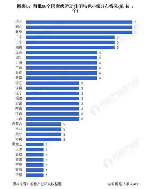 2017年8月,國(guó)家體育總局公布了首批96個(gè)國(guó)家級(jí)運(yùn)動(dòng)休閑特色小鎮(zhèn)試點(diǎn)名單,隨后,各個(gè)省份陸續(xù)頒布了省級(jí)體育特色小鎮(zhèn)試點(diǎn)名單。