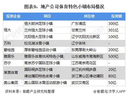 以房地產(chǎn)開發(fā)商為主的投資主體爭(zhēng)相布局體育特色小鎮(zhèn),比如,恒大歐洲足球小鎮(zhèn)、厚街碧桂園運(yùn)動(dòng)小鎮(zhèn)、雅居樂體育休閑特色小鎮(zhèn)等。
