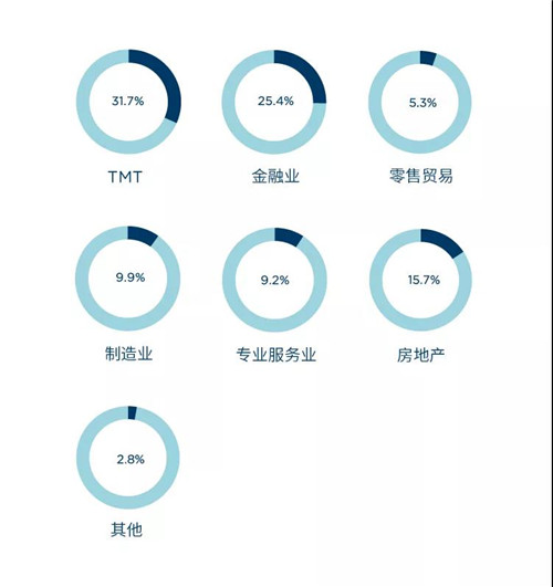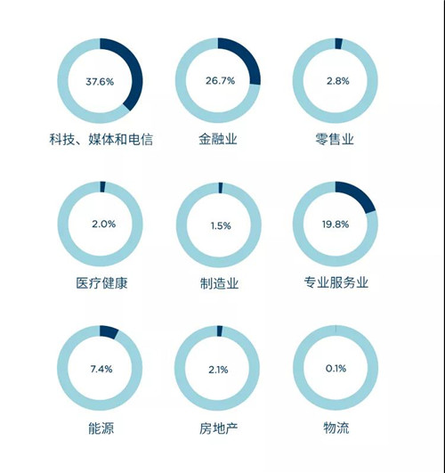 上海甲級寫字樓成交租賃面積——按產(chǎn)業(yè)(2020年)