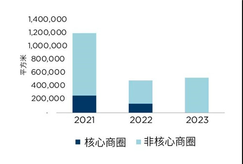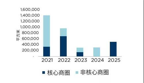 北京甲級寫字樓市場新增供應(yīng)動態(tài)(根據(jù)核心/非核心商圈劃分)