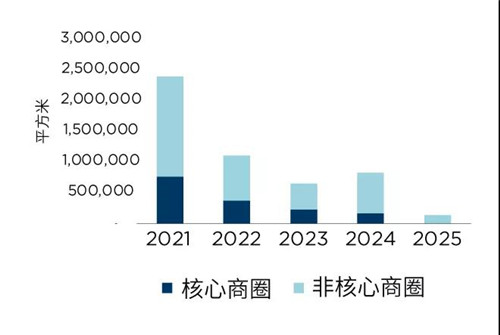 2021年將是優(yōu)質(zhì)寫字樓項(xiàng)目涌入大中華區(qū)主要市場的高峰期。據(jù)統(tǒng)計(jì),2021年至2025年間,大部分項(xiàng)目將坐落在非核心區(qū)域。許多租戶可能會選擇租賃在擁有優(yōu)質(zhì)樓宇并具有價(jià)格優(yōu)勢的非核心板塊,去中心化趨勢的發(fā)展有望進(jìn)一步發(fā)展。