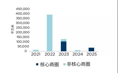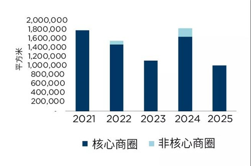 上海甲級寫字樓市場新增供應(yīng)動態(tài)(根據(jù)核心/非核心商圈劃分)