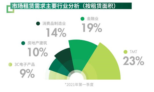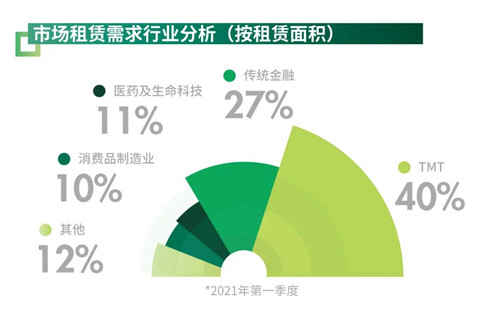 需求端看,TMT(40%)、傳統(tǒng)金融(27%)與生物醫(yī)藥(11%)為租賃需求來源的主要行業(yè)。本季度互聯(lián)網(wǎng)與游戲類公司在漕河涇板塊積極擴(kuò)張;傳統(tǒng)金融企業(yè)積極涉足科技金融業(yè)務(wù),金橋與外高橋等板塊均錄得大面積成交;醫(yī)藥研發(fā)及醫(yī)療器械公司需求穩(wěn)定,分別以張江與金橋?yàn)槠溥x址區(qū)位。供需兩端均呈現(xiàn)復(fù)蘇態(tài)勢,推動全市平均租金啟動上漲行情。