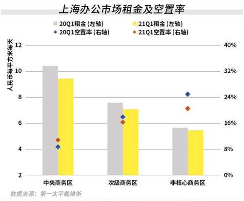 牛年伊始,上海寫(xiě)字樓市場(chǎng)便有不俗表現(xiàn)。第一季度凈吸納量近20萬(wàn)平米,超出2019至2020年16至17萬(wàn)平米的季均吸納水平。國(guó)內(nèi)企業(yè)強(qiáng)勁增長(zhǎng)需求正沖抵疫情負(fù)面影響。