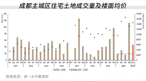 中指研究院的數(shù)據(jù)顯示,2021年第一季度成都主城區(qū)住宅土地成交量同比上漲超過(guò)140%。與此同時(shí),為了防范潛在金融風(fēng)險(xiǎn),促進(jìn)地產(chǎn)行業(yè)穩(wěn)健發(fā)展,成都加強(qiáng)了對(duì)于土地競(jìng)買主體的資格審查,并首次限制超過(guò)“三道紅線”的房地產(chǎn)開(kāi)發(fā)企業(yè)在蓉拿地。