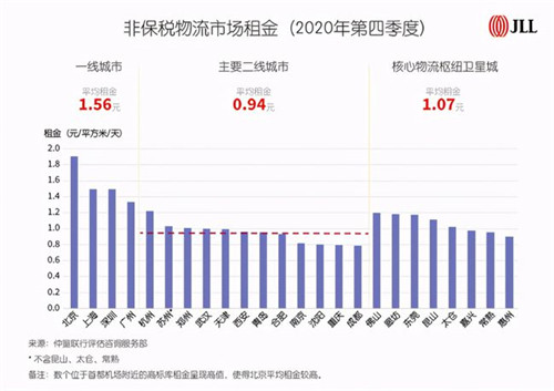 北京、上海、深圳、廣州四城的物流地產(chǎn)租賃市場表現(xiàn)明顯優(yōu)于全國其它城市,平均日租金達到1.56元/平方米。而在核心物流樞紐供不應(yīng)求、城市群逐漸打破行政邊界、交通基礎(chǔ)設(shè)施逐步互通互聯(lián)等背景下,以昆山、太倉、東莞、佛山等為代表的衛(wèi)星城得以承接外溢需求進而迅速發(fā)展,成為區(qū)域物流市場發(fā)展的重要推動力。部分核心物流樞紐衛(wèi)星城市的租金表現(xiàn)甚至超過主要二線城市,租賃需求活力凸顯。