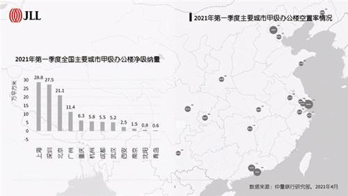 全國主要城市2021年首季度凈吸納量錄得125萬平方米,在連續(xù)多年供大于求的趨勢下,本季度全國整體凈吸納量高于新增供應(yīng)水平,實(shí)現(xiàn)市場供需的基本均衡。