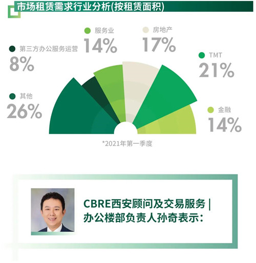 “西安第一季度新開工項目中近40%為創(chuàng)新驅動和先進制造業(yè)項目,其中不乏奕斯偉硅產業(yè)基地及華為物聯(lián)網中心等龍頭企業(yè)項目。隨著新能源、通信、智能制造等重要科技領域的國內外企業(yè)機構的持續(xù)進駐,頭部企業(yè)聚集效應帶動西安科技創(chuàng)新氛圍愈發(fā)濃厚,未來有望衍生更多辦公需求!