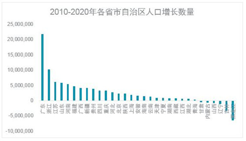 在過去十年中,中國(guó)的人口呈現(xiàn)逐漸向東部聚集的趨勢(shì)。從人口占比來看,東部地區(qū)人口占比較2010年上升了2.15個(gè)百分點(diǎn),至39.93%。而東北區(qū)域的人口較十年前下降了1.2個(gè)百分點(diǎn)。