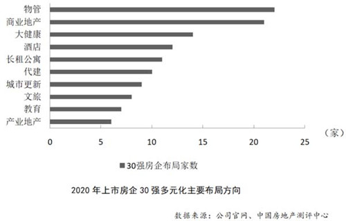 在創(chuàng)新能力上,產(chǎn)品創(chuàng)新、管理創(chuàng)新和多元化業(yè)務(wù)發(fā)展成為房地產(chǎn)企業(yè)高質(zhì)量發(fā)展的重要抓手。產(chǎn)品作為房地產(chǎn)企業(yè)的核心競爭力之一,受到房企越來越多的關(guān)注。2020年是我國經(jīng)濟(jì)數(shù)字化轉(zhuǎn)型的關(guān)鍵期,數(shù)字化改革正逐步改善房地產(chǎn)企業(yè)的運(yùn)營效率,多元化則是房地產(chǎn)企業(yè)追求第二增長曲線的重要途徑。目前,房地產(chǎn)行業(yè)的發(fā)展邏輯已不再支持高速增長,盡管目前上市房企發(fā)展重點(diǎn)仍為夯實(shí)開發(fā)主業(yè),但尋找第二增長曲線已成房企共識。龍頭房企開辟第二戰(zhàn)場主要包括物管、租賃、辦公、文旅、養(yǎng)老、產(chǎn)業(yè)運(yùn)營、投資等領(lǐng)域。