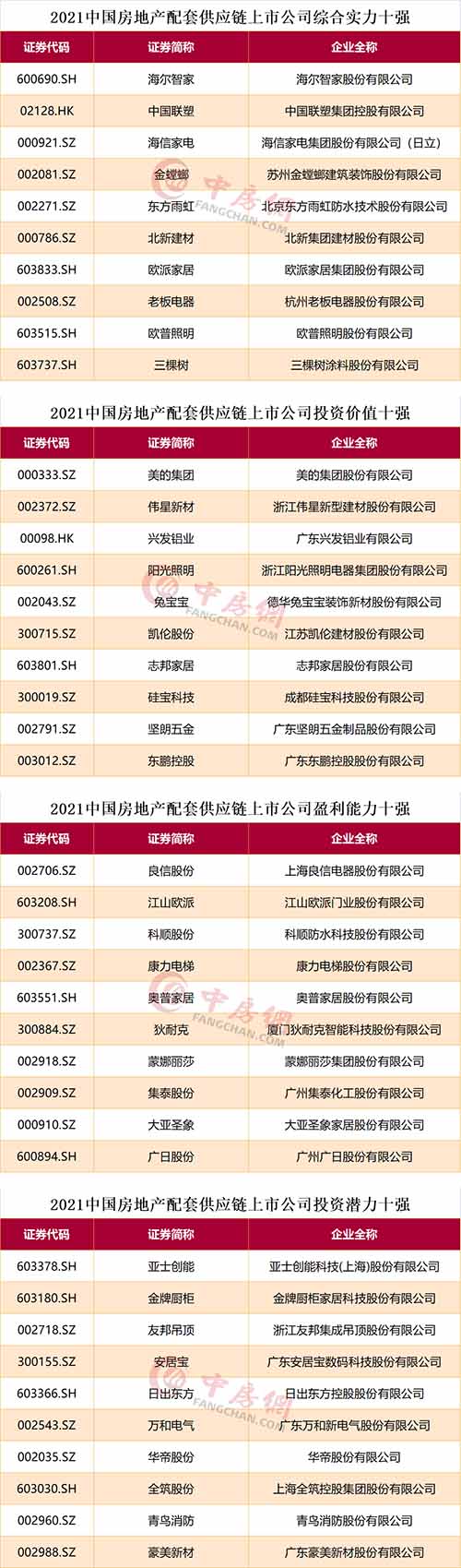 此外,本次測評還發(fā)布了2021中國房地產(chǎn)配套供應(yīng)鏈上市公司分榜單。測評研究報告指出,2020年房地產(chǎn)市場政策環(huán)境逐步收緊,行業(yè)整體規(guī)模增速已開始放緩,行業(yè)內(nèi)部分化明顯,房企在降本增效、提質(zhì)升級方面對供應(yīng)鏈企業(yè)產(chǎn)品、服務(wù)的適配能力提出了更高要求。建筑產(chǎn)品的建造是一個集合土地、供應(yīng)商產(chǎn)品和服務(wù),為客戶打造高品質(zhì)產(chǎn)品的過程,離不開高效的供應(yīng)鏈和優(yōu)秀供應(yīng)商的儲備。綜合實(shí)力強(qiáng)的供應(yīng)商與房企深化合作,為雙方實(shí)現(xiàn)互惠共贏奠定了堅實(shí)的基礎(chǔ)。