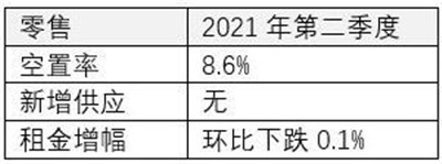 本季度無新增供應(yīng)入市。截至2021年二季度末,全市優(yōu)質(zhì)零售地產(chǎn)市場存量為432萬平方米,市場層面以去化及調(diào)整現(xiàn)有項(xiàng)目為主。未來,新增供應(yīng)將主要集中于非核心商圈的社區(qū)型商業(yè)。