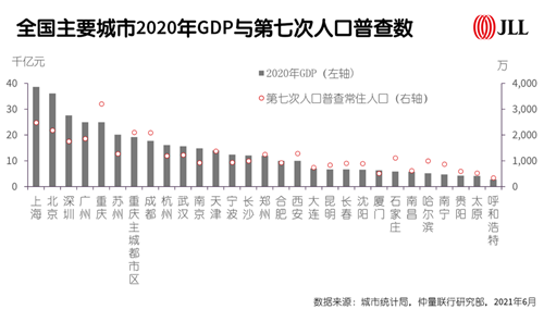 2021年第一季度,成渝兩市的GDP位列1.5線城市上位圈;而西安GDP總值2020年也首次跨入萬億俱樂部,成為西北地區(qū)的領(lǐng)頭羊。據(jù)第七次人口普查數(shù)據(jù)顯示,重慶主城都市區(qū)、成都、西安人口數(shù)量分別位列全國第三、第四與第八。經(jīng)濟與人口基本面構(gòu)筑起了西部三城辦公樓市場穩(wěn)健需求。