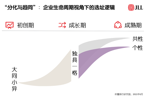 除細分領(lǐng)域差異外,科技互聯(lián)網(wǎng)企業(yè)在企業(yè)生命周期的不同階段也有不一樣的選址特征。