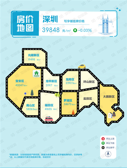 二季度深圳寫字樓掛牌價格達到39848元/㎡,在一線城市中排名領先。分區(qū)域來看,南山區(qū)寫字樓掛牌價格高于其他各區(qū),為58236元/㎡,福田區(qū)和寶安區(qū)分別以41655元/㎡、40047元/㎡的掛牌價格位列第二和第三名。