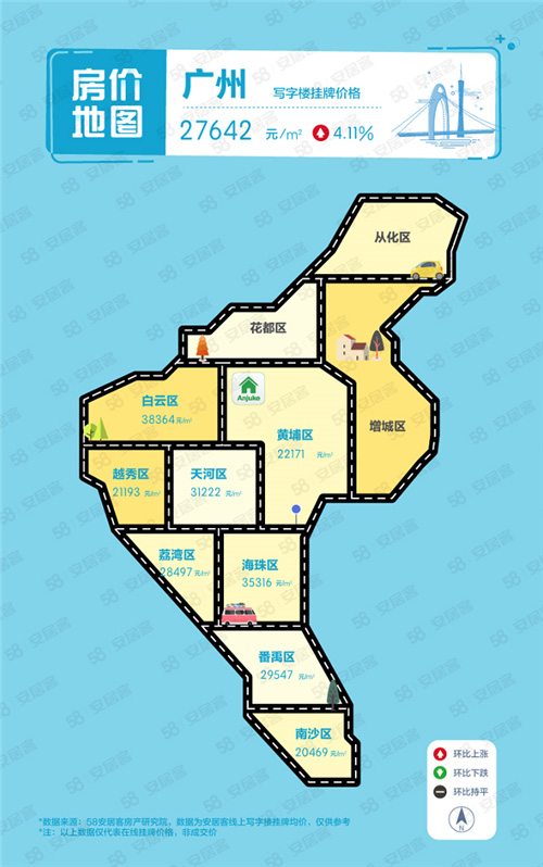 另外,廣州寫字樓掛牌價格為27642元/㎡,環(huán)比漲幅為4.11%。區(qū)域層面,白云區(qū)掛牌價格最高達到38364元/㎡,海珠區(qū)以35316元/㎡的掛牌價格排在其后。天河區(qū)以31222元/㎡的掛牌價格排在第三位。