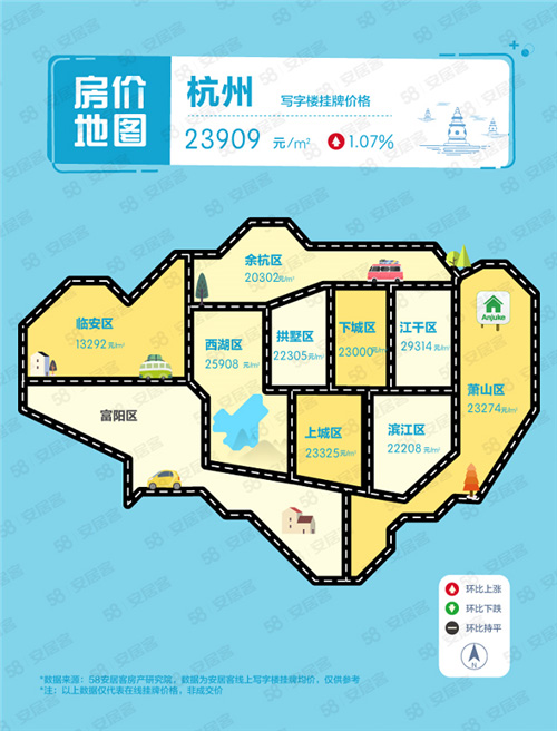 根據58同城、安居客《2021年Q2寫字樓價格地圖》顯示,新一線城市中,杭州寫字樓掛牌價格為23909元/㎡,環(huán)比微漲1.07%。其中,江干區(qū)寫字樓掛牌價格為29314元/㎡,領先其他區(qū)域。