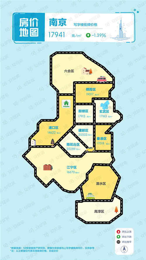 二季度南京寫字樓掛牌價格達到17941元/㎡,環(huán)比微跌1.39%。分區(qū)域來看,建鄴區(qū)以20333元/㎡的掛牌價格排在首位,雨花臺區(qū)以20289元/㎡的水平緊隨其后。