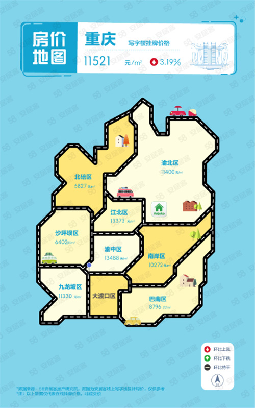 作為成渝經濟圈的另一重點城市,重慶二季度寫字樓掛牌價格為11521元/㎡,環(huán)比微漲3.19%。其中,渝中區(qū)和江北區(qū)分別以13488元/㎡和13373元/㎡的寫字樓掛牌價格領跑。