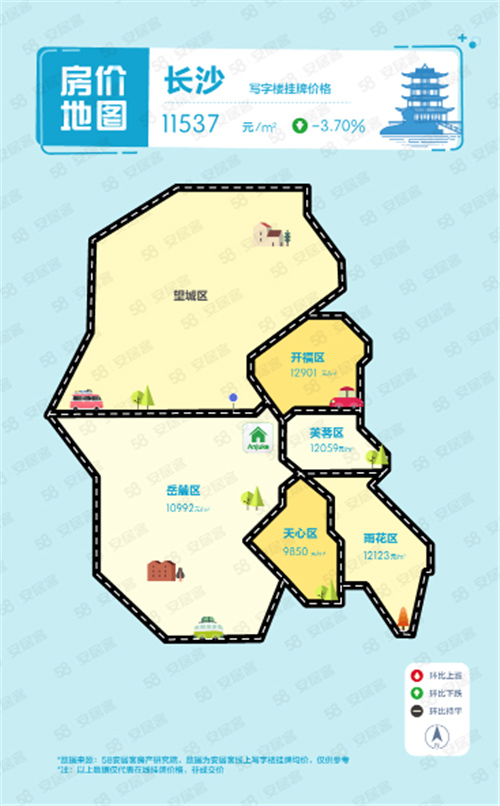 二季度長沙寫字樓掛牌價格為11537元/㎡,環(huán)比下跌3.70%。其中,開福區(qū)寫字樓掛牌價格達到12901元/㎡,雨花區(qū)和芙蓉區(qū)緊隨其后。