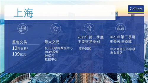 上海二季度完成10筆交易,總交易額為139億元。自用客戶仍是寫字樓和商務園區(qū)板塊最活躍的買家,而投資交易包括公寓、數(shù)據(jù)中心、物流和酒店項目。
