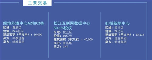 物流及數(shù)據(jù)中心方面,Metro RE以3.26億元收購青浦區(qū)冷鏈項目,普洛斯以60億元收購松江區(qū)某數(shù)據(jù)中心50.1%股權。