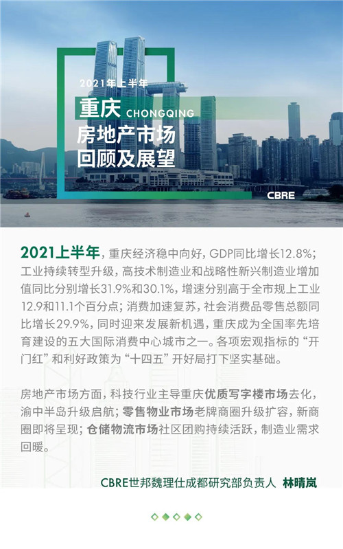 “2021上半年,以科技和金融為主的中資頭部企業(yè)于重慶積極擴張,同時外資企業(yè)的需求也明顯回暖。未來,隨著重慶內(nèi)陸開放高地加速建設(shè),市場有望見證更多企業(yè)進駐重慶,釋放活躍需求。另一方面,城市更新積極開展,而業(yè)主也越發(fā)重視資產(chǎn)管理,上述市場格局的變革和運營專業(yè)度的提升將引導(dǎo)需求新流向!