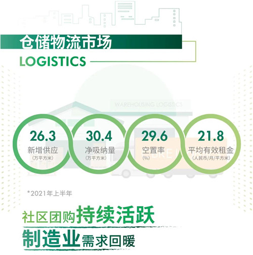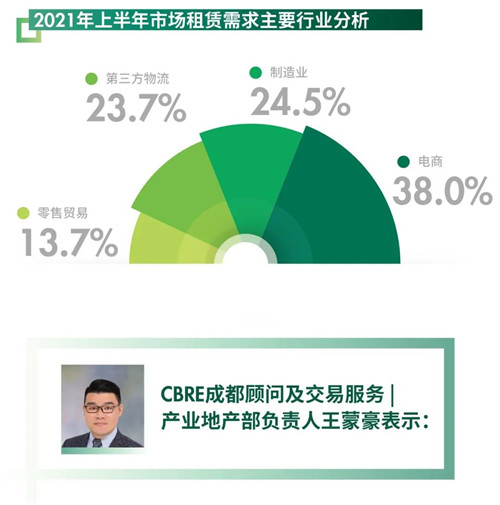 按需求行業(yè)看,以社區(qū)生鮮團購為主的電商需求持續(xù)活躍,吸納量貢獻率達38.1%。另一方面,制造業(yè)需求顯著回暖,吸納量貢獻率躍升至第二位,占比24.5%,其中汽車零部件企業(yè)的需求最為活躍。統(tǒng)計數(shù)據(jù)顯示,2021上半年,重慶支柱產(chǎn)業(yè)穩(wěn)固發(fā)展,汽摩、電子兩大產(chǎn)業(yè)增加值同比分別增長23.7%和33.0%,其中汽車產(chǎn)業(yè)同比增長25.3%,摩托車產(chǎn)業(yè)同比增長17.3%。