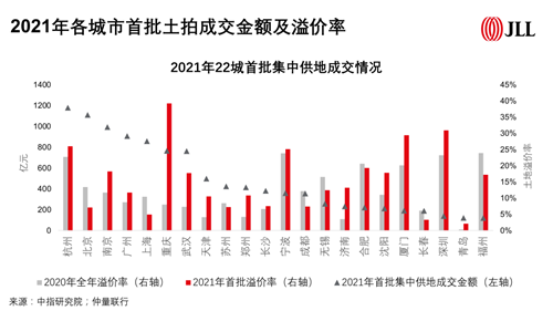 重慶:重慶首批集中供地46宗地全部成交,由于此次出讓地塊均位于中心城區(qū),首批供地出讓平均溢價率高達39%。