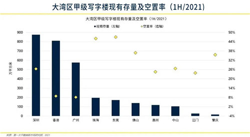 2021年上半年,大灣區(qū)甲級寫字樓入市節(jié)奏逐步恢復(fù),區(qū)域新增供應(yīng)達(dá)144.9萬平方米,市場總存量因此增至3,039.2萬平方米。