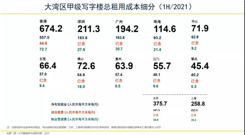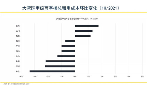 期內(nèi),大灣區(qū)核心城市如香港、廣州和深圳的總租用成本環(huán)比跌幅分別為2.2%、2.2%和1.0%。