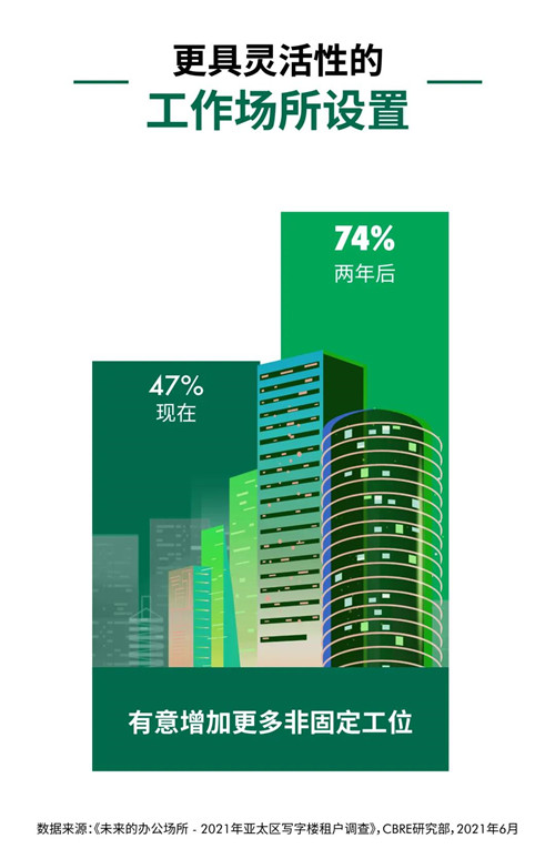 盡管新冠疫情前景尚未完全明朗,其對亞太地區(qū)寫字樓租戶的干擾正在減少。在靈活辦公和新型工作模式日益普遍的趨勢引導(dǎo)下,區(qū)域內(nèi)企業(yè)已經(jīng)在重啟對不動產(chǎn)策略的長期規(guī)劃。
