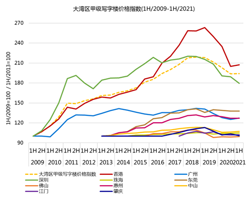 7月8日,第一太平戴維斯正式發(fā)布《2021年上半年大灣區(qū)甲級(jí)寫字樓指數(shù)》。