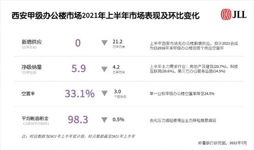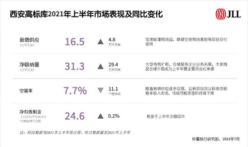 2021年上半年,西安優(yōu)質(zhì)辦公樓供應(yīng)按下暫停鍵,單一業(yè)權(quán)辦公樓空置率降至24.5%,業(yè)主方降租意愿減弱,未來(lái)兩年辦公樓市場(chǎng)有望迎來(lái)租金拐點(diǎn)。零售物業(yè)市場(chǎng)方面,首層品牌進(jìn)行大面積調(diào)改升級(jí),生活類業(yè)態(tài)比重增加。物流地產(chǎn)市場(chǎng)中,電商、快遞快運(yùn)、大宗商品貿(mào)易、倉(cāng)儲(chǔ)服務(wù)企業(yè)需求表現(xiàn)活躍,高標(biāo)庫(kù)市場(chǎng)可租賃面積持續(xù)下降。