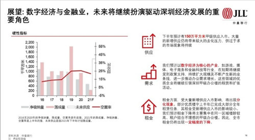與此同時,金融業(yè)作為深圳支柱產業(yè)之一,未來將繼續(xù)扮演驅動深圳經濟發(fā)展的重要角色,我們認為該行業(yè)將長期支持深圳核心商務區(qū)優(yōu)質辦公樓租賃需求。受數(shù)字經濟與金融業(yè)的支持,深圳甲級辦公樓全年凈吸納量將突破百萬平方米。
