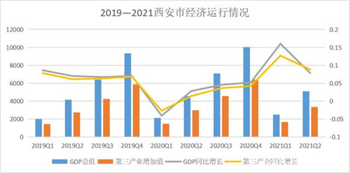截至二季度末,西安實現(xiàn)生產(chǎn)總值5099.62億元,同比增長7.8%,其中,第三產(chǎn)業(yè)持續(xù)穩(wěn)步恢復(fù),增加值3336.32億元,同比增長8.8%,兩年平均增長5.0%?傮w來看,全市經(jīng)濟運行穩(wěn)中加固、恢復(fù)有力、動能增強。