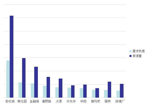 值得注意的是,在最受關(guān)注的商圈前五中,除了春熙路商圈位于傳統(tǒng)中央商務(wù)區(qū)以外,其余四個(gè)全部位于高新區(qū)新興商圈。一季度中市場(chǎng)關(guān)注度很高的琉璃廠、廣福橋、芳草在本季度跌出前五,這表明本季度內(nèi),主城區(qū)的老商圈所受關(guān)注降溫,高新區(qū)所受的市場(chǎng)關(guān)注度依然遙遙領(lǐng)先。