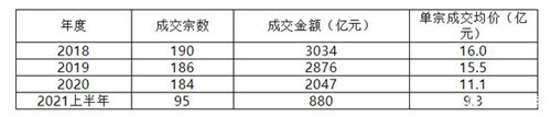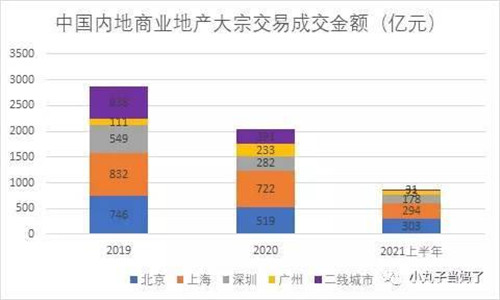 戴德梁行近期發(fā)布的數(shù)據(jù)顯示,2021年上半年中國內(nèi)地共錄得880億商業(yè)地產(chǎn)大宗交易成交,約為2020年全年成交總額的43%,不及18、19年成交總額1/3,商業(yè)地產(chǎn)大宗交易市場尚未回到疫情前的水平;但上半年成交宗數(shù)和過去三年基本持平,達到95宗。單宗成交均價為9.3億元,比2020年降低1.8億元/宗。由此可見投資者對資產(chǎn)價格的判斷更為理性和謹慎,高總價成交項目減少,但整體投資活躍度未見明顯波動,市場信心仍存。