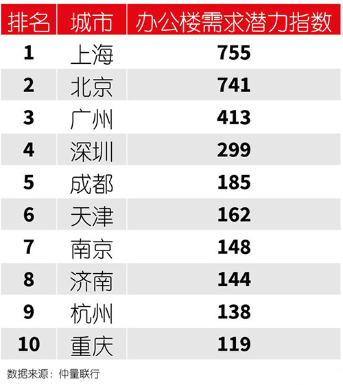 中國(guó)各地辦公樓市場(chǎng)差異巨大 京滬租金高居世界前列