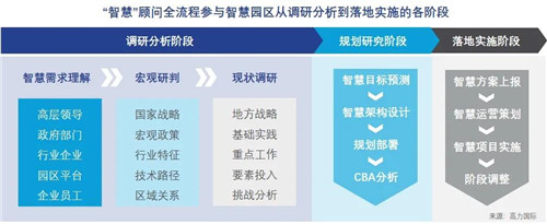 高力國際研究發(fā)現(xiàn),缺乏頂層設(shè)計是造成智慧園區(qū)一系列共性痛點的根本原因。因此,應(yīng)用“智慧顧問”這一角色,作為園區(qū)開發(fā)平臺在智慧園區(qū)項目中的智囊,深入智慧園區(qū)從調(diào)研分析到落地實施的各階段。不僅為園區(qū)開發(fā)平臺提供智慧需求分析、智慧目標(biāo)確定、智慧方案選取等一系列核心工作,而且與設(shè)計單位、施工單位和智慧系統(tǒng)供應(yīng)商緊密合作,確保智慧方案的順利落地。