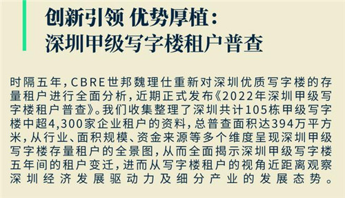 CBRE深圳顧問及交易服務(wù)部 | 辦公樓負責人吳洋表示:“近兩年,科技行業(yè)的政策監(jiān)管將改變該行業(yè)的發(fā)展態(tài)勢,從而對未來寫字樓租戶結(jié)構(gòu)產(chǎn)生一定的影響,但來自半導(dǎo)體、軟硬件、新能源汽車和數(shù)據(jù)服務(wù)的科技新賽道的需求增長將令科技企業(yè)需求依然在優(yōu)質(zhì)寫字樓市場中占據(jù)重要的一席。值得注意的是,今年6月,深圳市政府發(fā)布了‘20+8’的產(chǎn)業(yè)體系政策,著力發(fā)展壯大戰(zhàn)略性新興產(chǎn)業(yè)集群、培育發(fā)展未來產(chǎn)業(yè),‘20+8’產(chǎn)業(yè)體系幾乎覆蓋了世界上最有潛力的新興產(chǎn)業(yè),將為深圳優(yōu)質(zhì)寫字樓市場帶來更為豐富多元的科技產(chǎn)業(yè)需求。與此同時,深圳作為深港合作的重要節(jié)點城市及先行示范區(qū),未來在金融創(chuàng)新方面將不斷進行突破,疊加已有的依托深交所已經(jīng)形成的金融業(yè)生態(tài)基礎(chǔ),未來金融產(chǎn)業(yè)將呈現(xiàn)長足發(fā)展,帶動金融產(chǎn)業(yè)需求不斷提升。另一方面,憑借全國領(lǐng)先的商事登記主體數(shù)量優(yōu)勢,以及良好的發(fā)展和創(chuàng)新平臺,也將令專業(yè)服務(wù)業(yè)板塊需求不斷增長,特別是科技生態(tài)優(yōu)勢帶來的知識產(chǎn)權(quán)類法律類企業(yè)需求的增長將保持良好態(tài)勢。金融、科技和專業(yè)服務(wù)業(yè)三大主力需求板塊的發(fā)展向好,將共同推動優(yōu)質(zhì)寫字樓市場的穩(wěn)定發(fā)展!