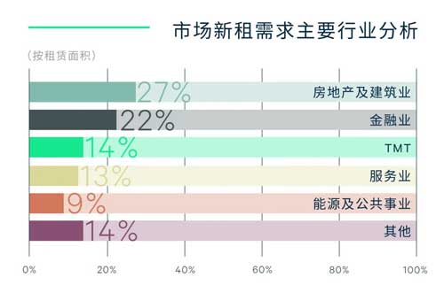 分行業(yè)看,房地產(chǎn)及建筑業(yè)、金融業(yè)和TMT行業(yè)主導(dǎo)季內(nèi)去化,分別占比27.5%,22.3%和14.2%。具體而言,季內(nèi),以建筑類(lèi)企業(yè)支撐的房地產(chǎn)及建筑業(yè)主導(dǎo)新租需求。其中,以道路橋梁等交通建設(shè)類(lèi)企業(yè)的升級(jí)需求為主導(dǎo)。都市圈的確立進(jìn)一步加速了西安交通網(wǎng)絡(luò)的建設(shè)。據(jù)陜西省提出的目標(biāo),未來(lái)五年計(jì)劃完成綜合交通投資約5,000億元。其中西安今年在交通方面計(jì)劃完成投資超過(guò)150億元,一批新改建高速公路、功能完善干線(xiàn)公路及國(guó)道過(guò)境一級(jí)化的項(xiàng)目相繼提上日程。宏觀的利好信息激發(fā)基建類(lèi)建筑企業(yè)需求的增長(zhǎng),隨著西安都市圈快速通勤網(wǎng)建設(shè)的提速,未來(lái)此類(lèi)租戶(hù)的升級(jí)擴(kuò)租趨勢(shì)將有所延續(xù)。其次,在西安連續(xù)出臺(tái)《關(guān)于促進(jìn)股權(quán)投資行業(yè)發(fā)展的若干措施》、《西安市金融支持經(jīng)濟(jì)穩(wěn)增長(zhǎng)工作措施》等一系列政策措施以?xún)?yōu)化金融營(yíng)商環(huán)境,打造“創(chuàng)投之都”的城市名片。借此契機(jī),創(chuàng)投及融資類(lèi)新興金融機(jī)構(gòu)的租賃需求出現(xiàn)大幅度增長(zhǎng),成為金融類(lèi)企業(yè)租賃需求增長(zhǎng)新動(dòng)力?萍夹旅襟w需求較上季度有較大幅度增長(zhǎng),通訊類(lèi)企業(yè)的新設(shè)立及擴(kuò)租需求支撐季內(nèi)TMT類(lèi)租賃需求的增加。在華為、中興等龍頭企業(yè)的帶動(dòng)下,產(chǎn)業(yè)鏈上眾多知名企業(yè)持續(xù)進(jìn)入西安或拓展西安市場(chǎng),衍生大量辦公需求,逐漸成為T(mén)MT類(lèi)租賃需求新動(dòng)能。